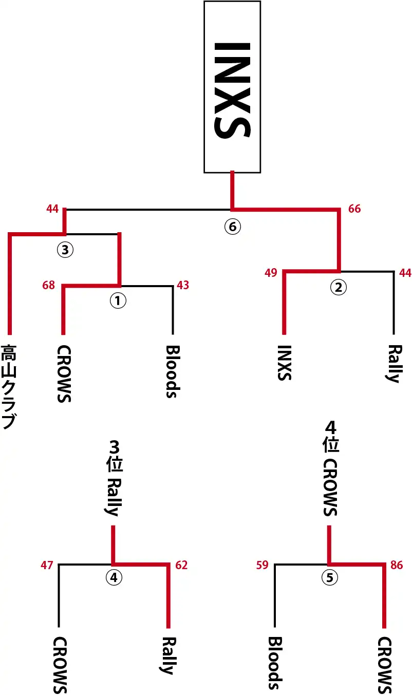| ① | 10月23日 | (木) | CROWS | 対 | Bloods | INXS | INXS |